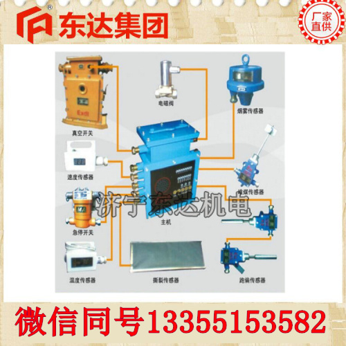 矿用带式输送机综合保护控制装置为矿用隔爆兼本质安全型,适用于煤矿中含有爆尘及爆炸性 气体(CH4)的场合,作为皮带运输机的低速、超温、烟雾、满煤、堆煤、跑偏、撕带等事故的综合保护和系统多台皮带机间集中控制及报警通讯之用。配有超温 烟雾自动洒水灭火装置。采用语言加灯光报警方式,新颖独特。