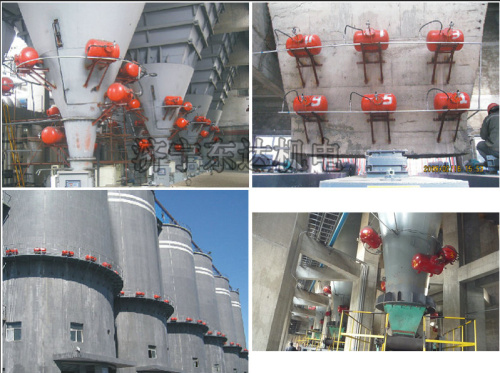 破拱器广泛应用于 火力发电厂、煤矿及井下煤仓、洗煤厂、水泥厂、混凝土加工厂、铸造厂、化肥厂、焦化厂、煤气厂、化工厂、铝厂、碱厂、钢铁厂、矿山、码头、食品、粮食、饲料加工厂、锅炉、制药厂等重要贮运散装物料的场合。物料在料仓内滞留起拱已成为各种类型料仓不可避免的共同弊病,在料仓上设置KQP型破拱器(专利号:CN200920019778.1)能彻底破除料仓起拱、堵仓、粘仓等现象,使得料仓内物料正常流动,保证生产连续稳定进行。
