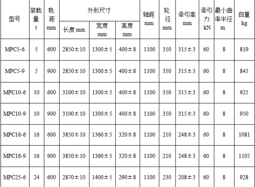 MPC5-6平板车用于煤矿地面和井下巷道窄轨铁路运输设备或材料,载重16t以上一般用于综采液压支架等的运输。本产品执行标准MT 387-2007《煤矿窄轨矿车安全性测定方法和判定规则》GB/T 2885.5-2008 《矿用窄轨车辆 第5部分 平板车》。