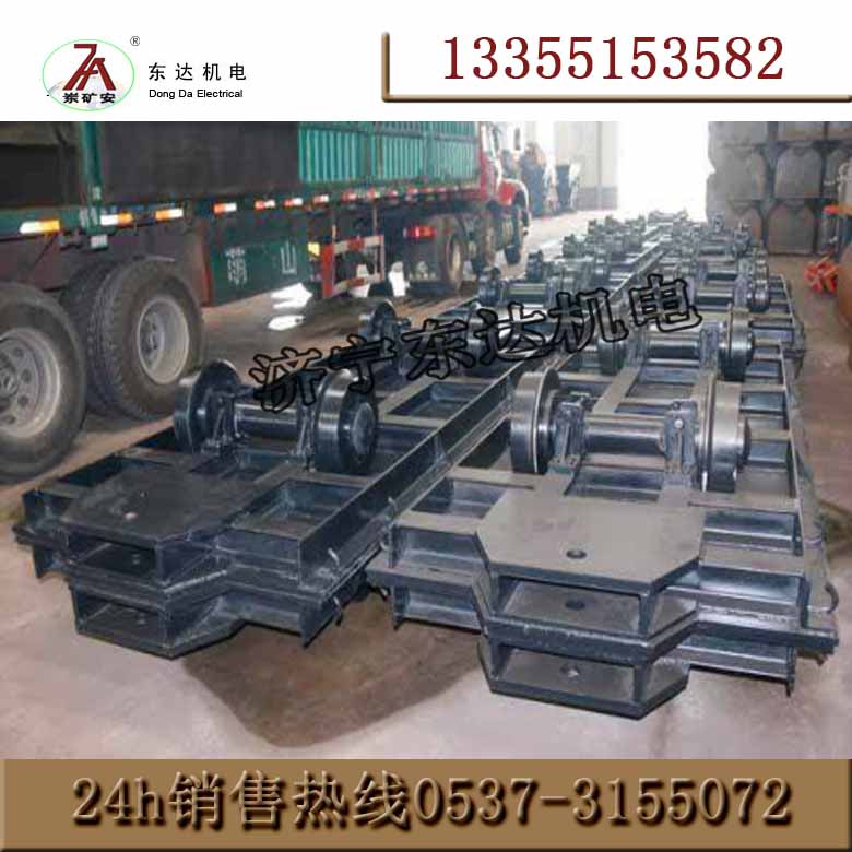 平板车用绞车或电机车牵引通过连接插销、三环链连接。